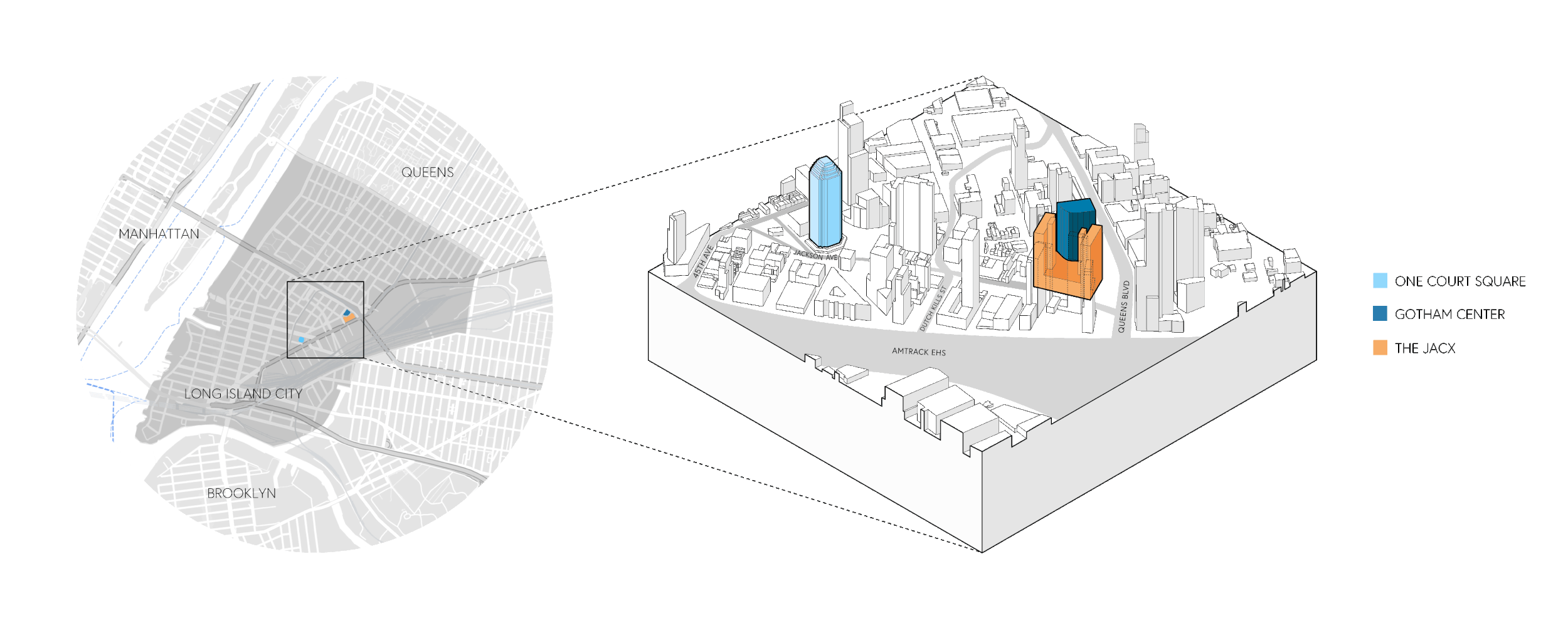 Together, The JACX, Gotham Center, and One Court Square have anchored future development and prosperity for the area, making it one of New York’s most exciting up-and-coming neighborhoods.